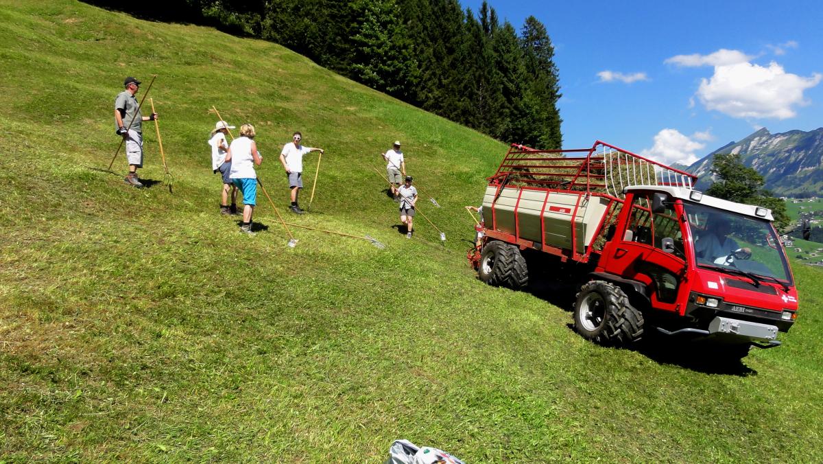 Dank vielen fleißigen Helfern und super schönem Wetter konnte das ÖKO-Heu in der „Wildi“ und im „Schwendi“ samt Emd im Grünen in wenigen Tagen unter Dach gebracht werden.