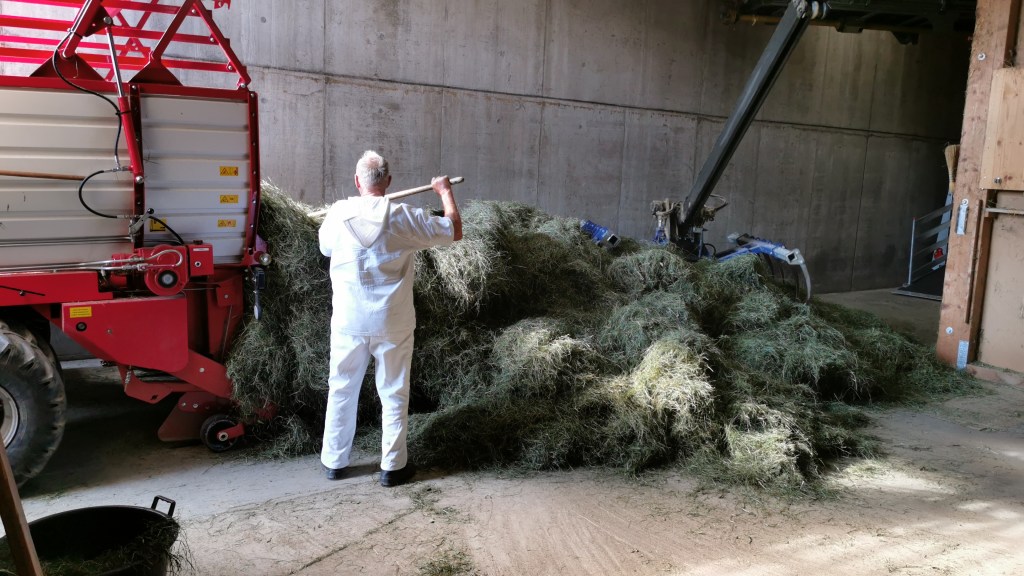 Der erste Schnitt: „Heu“ im Frühsommer ist der Ertragsreichste und wichtigste. Für unser Vieh sozusagen der Hauptgang im Winter.