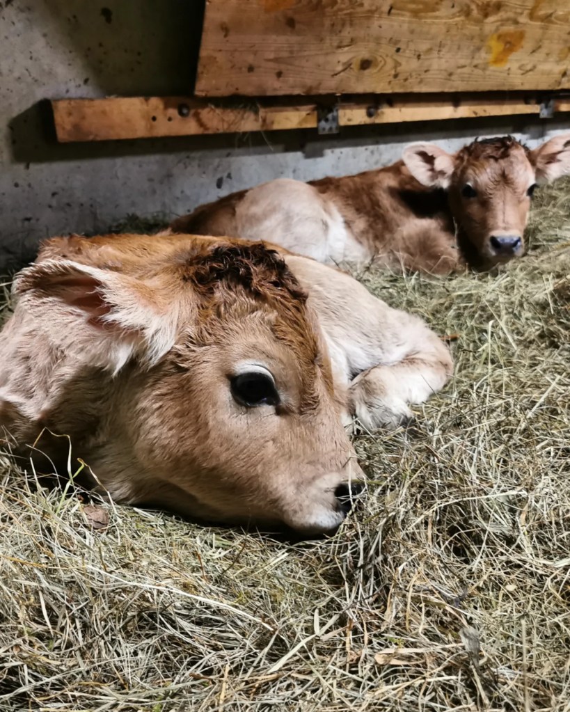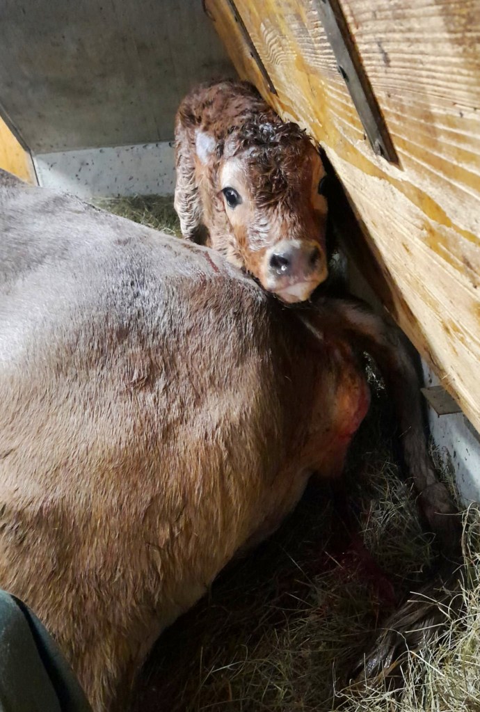 Unsere Mutterkuh Stella hat kürzlich Zwillinge mit den Namen Sandra & Sandro zur Welt gebracht. Alle sind wohlauf und Bauer Kari dementsprechend happy.