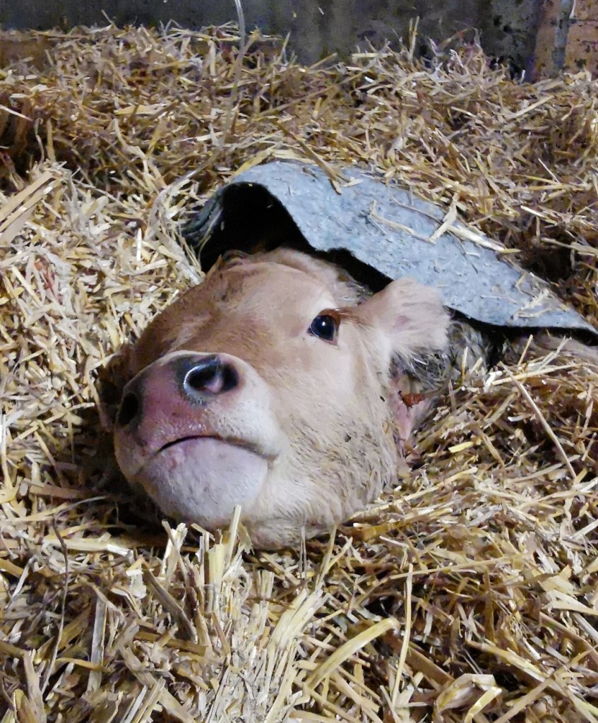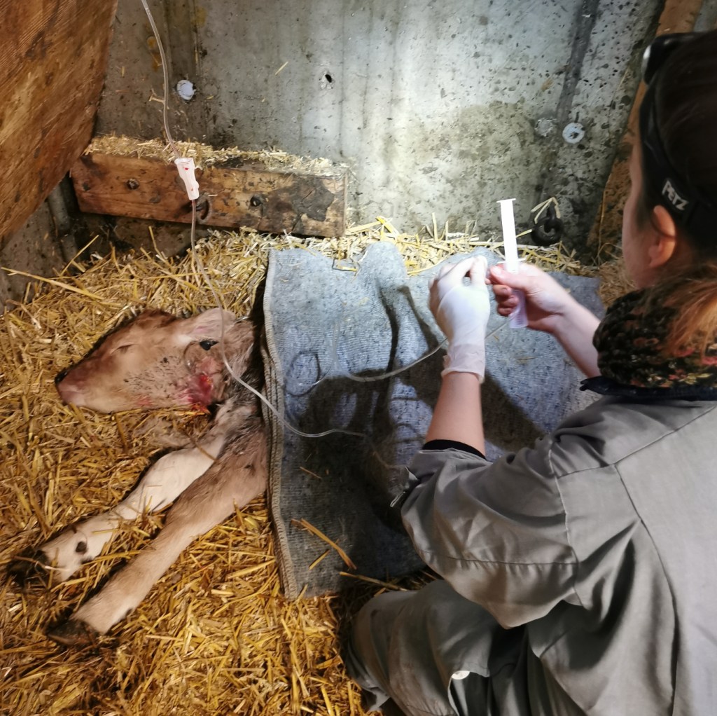 Kürzlich hat unser Rind Helena das erste mal gekalbt; Hanna soll sie heissen. Doch nur eineinhalb Tage nach der Geburt verschlechterte sich deren Zustand rapide. Somit mussten wir medizinische Hilfe aufbieten. Gestellte Diagnose: schwere Blutvergiftung mit Hirnhautenzündung als Folgeerkrankung. Die Tierärztin hat sich sehr bemüht und alle Register gezogen, jedoch hat die kleine Hanna den Kampf innert Stunden verloren. Somit mussten wir sie gehen lassen. Das schöne daran, Bauer Kari konnte sie bis zuletzt begleiten.