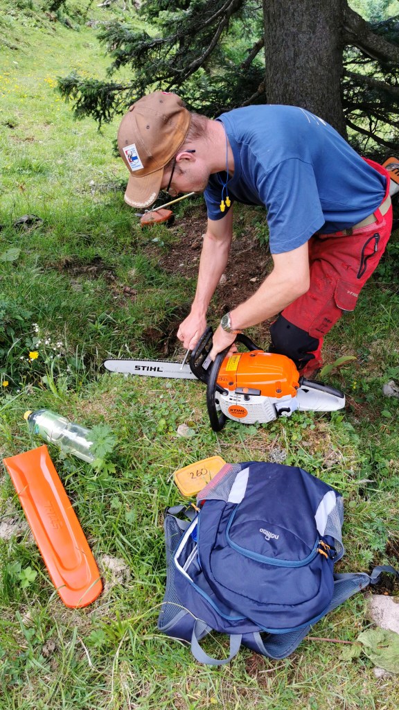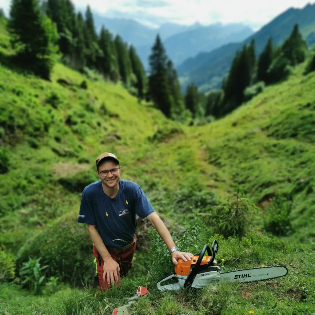 Die Heu-freien Tage werden genutzt für „Weide-Pflege“ auf unserer Alp Hintermatt.