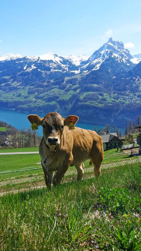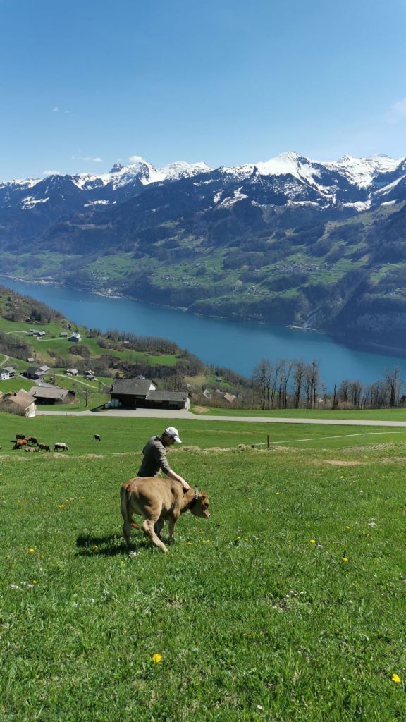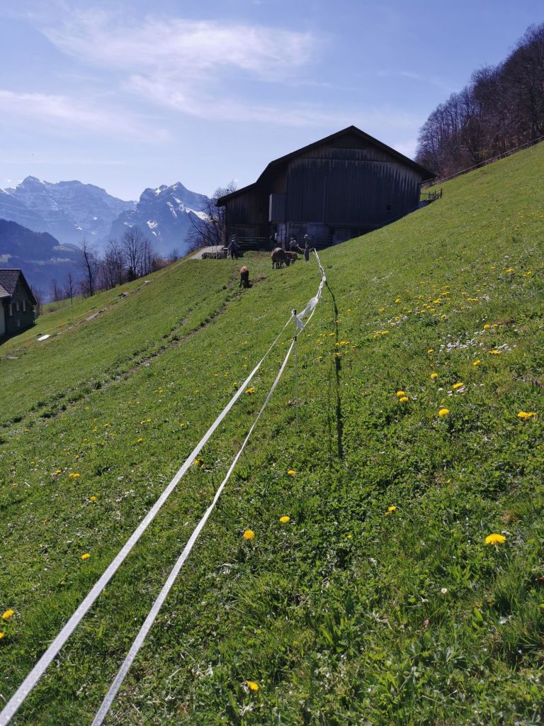 Am Donnerstag 03. April 2025 durfte unsere Herde das erste Mal auf die Weide. Bei sonnig warmem Wetter, einer angenehmen Frühlingsbrise und saftig grünem Gras weideten unsere Mutterkühe genüsslich hin und her.