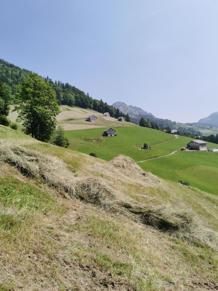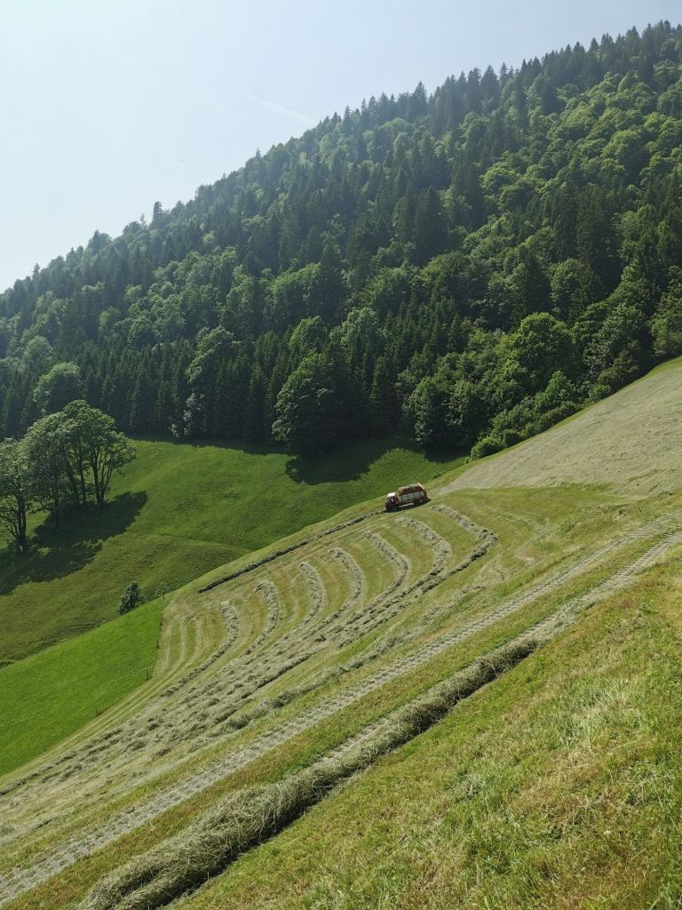 Nach dem Heu ist vor dem Emd.Wir sind bereits mitten in der zweiten Runde und warten auf den Stichtag für’s erste Öko.