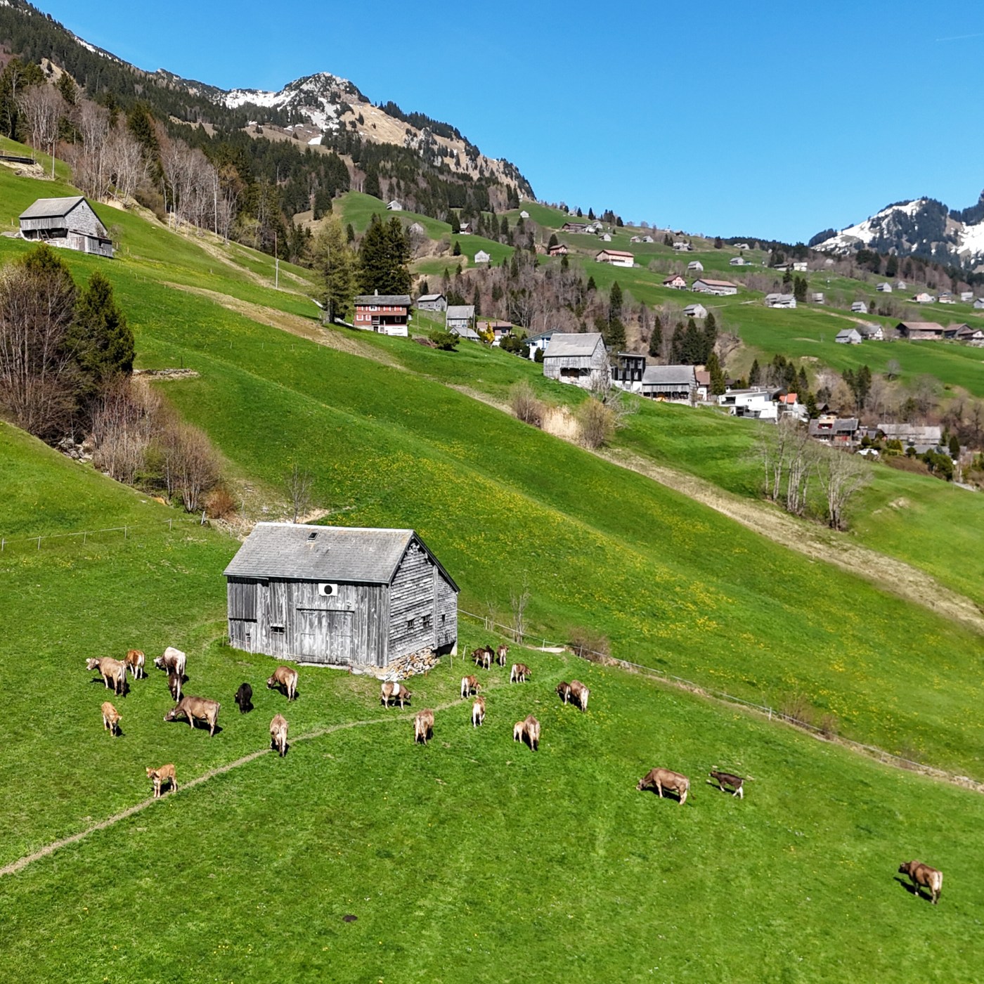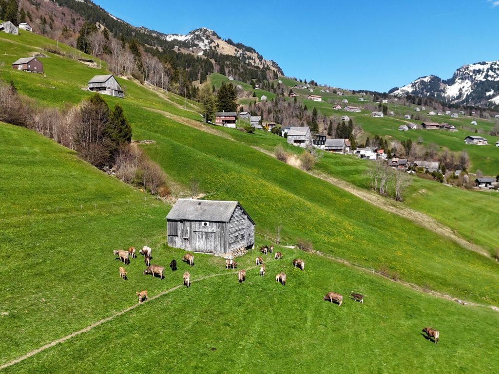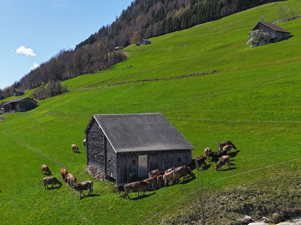 Am Freitag 10. April durften unsere Tiere erstmals auf die Weide vor dem Hauptstall im Aeschen. Um die Herde möglichst entspannt zu behalten wurden die Kühe ohne Glocken und gestaffelt ins Freie gelassen.