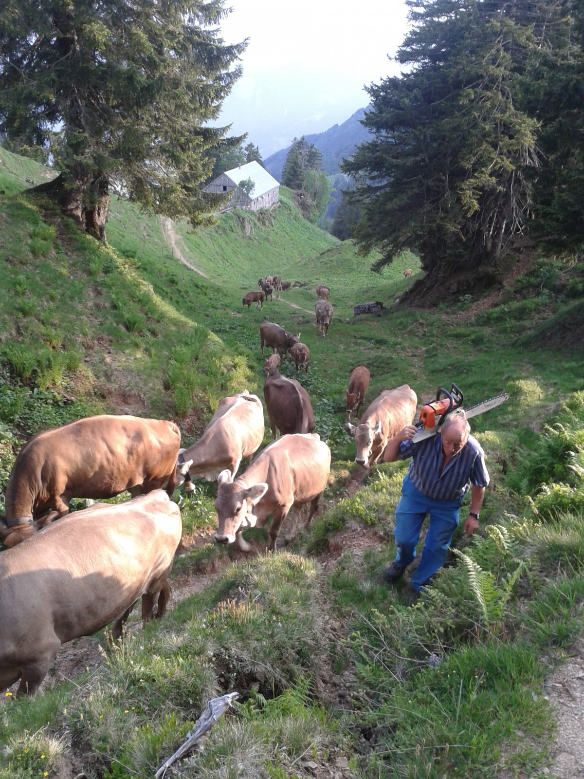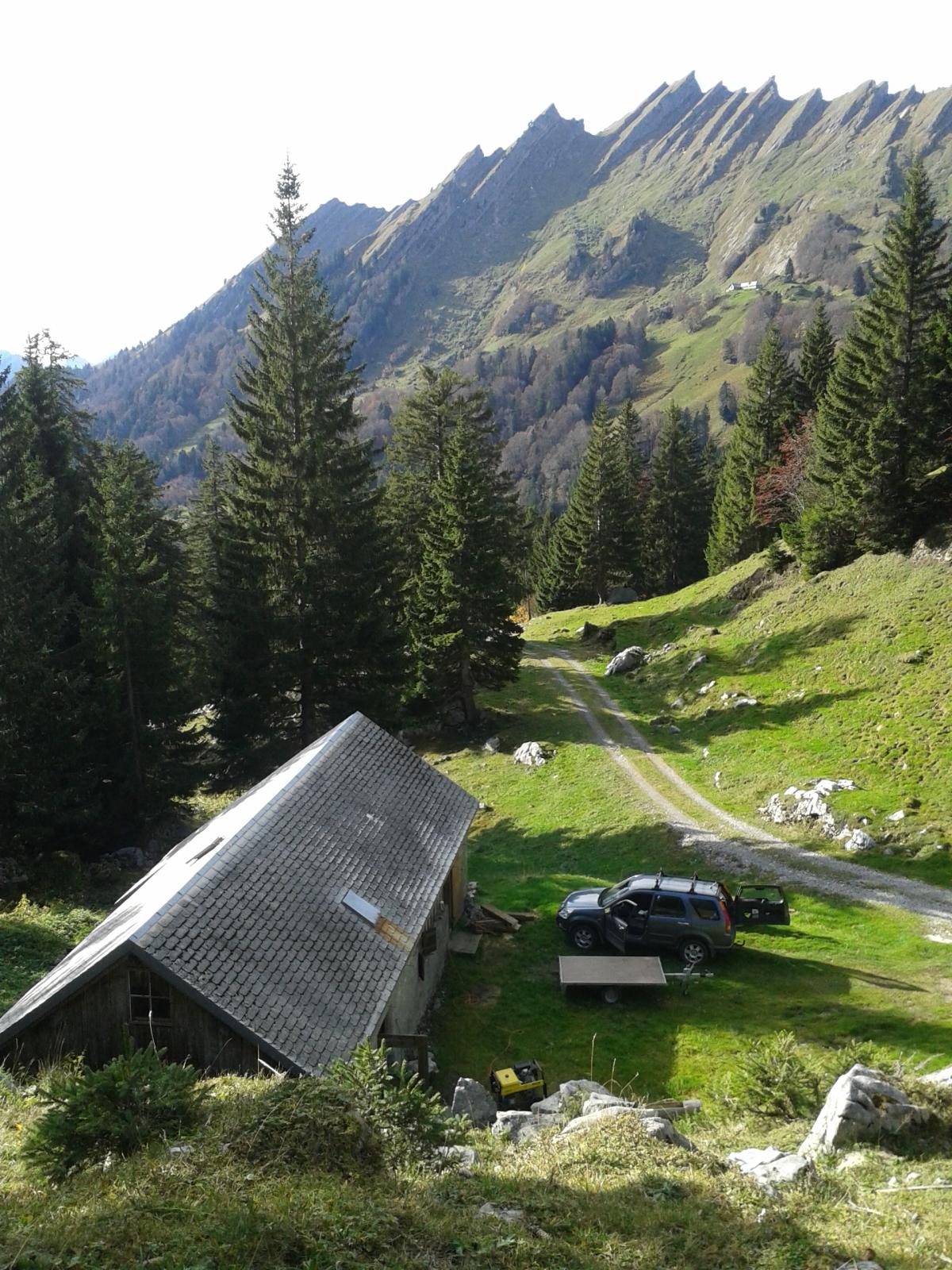 Seit dem Sommer 1990 dürfen wir diese obere Alphütte im Hintermatt beleben. Viele Stunden investierten wir als Familie damals in diese Alphütte zum Wohle von Mensch und Tier. Ab Juni bis anfangs September weidet die Mutterkuh-Herde auf den saftigen Wiesen im Hintermatt.