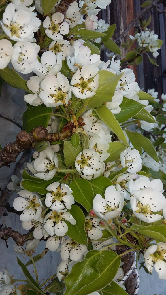 an der Scheunenwand geschützt, nur im Sonnenlicht.