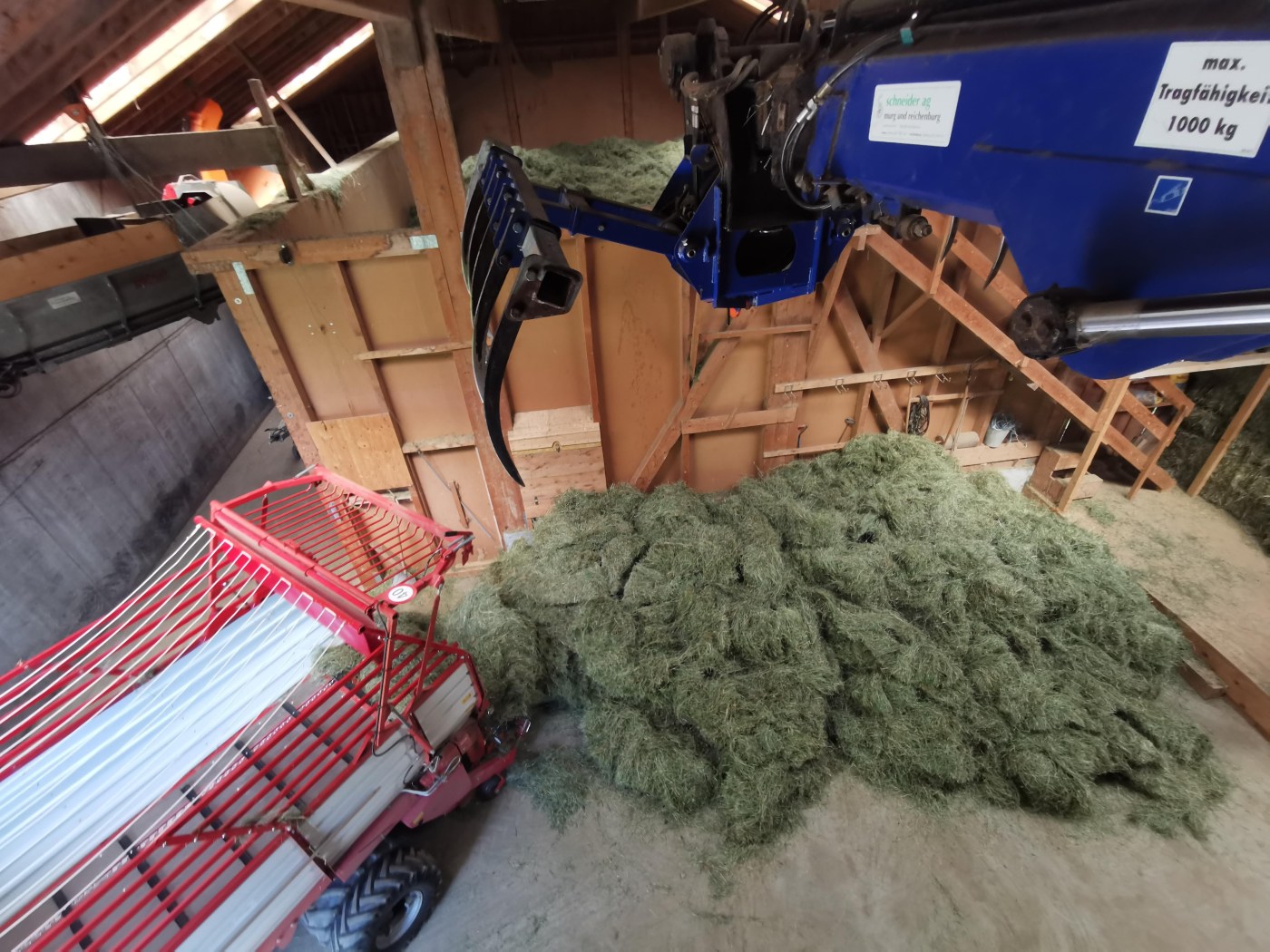 Juhuh, der erste Schnitt "Heu" ist geschafft. Trotz kleinen maschinellen Zwischenfällen schauen wir sehr zufrieden auf die vergangenen zwei Wochen zurück. Sowohl die Temperaturen als auch die Bedingungen zum Fahren in den steilen Hängen waren super.
