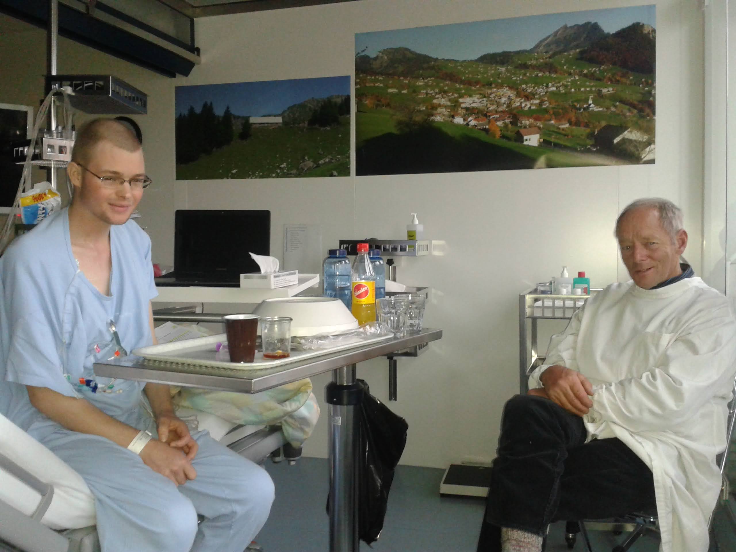 Kurz nach der Hofübernahme im Jahr 2014 erkrankte der junge Betriebsleiter Kari an akuter myeloischer Leukämie. Es folgte eine Zeit von bangen im Kantonsspital St.Gallen und von hoffen in der Universität Klinik in Zürich. Kari hatte grosses Glück, für ihn wurde ein passender Spender gefunden. Wir sind sehr dankbar, dass er heute gesund bei uns zu Hause sein darf und seinen Betrieb mit voller Energie weiterführen kann.